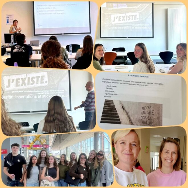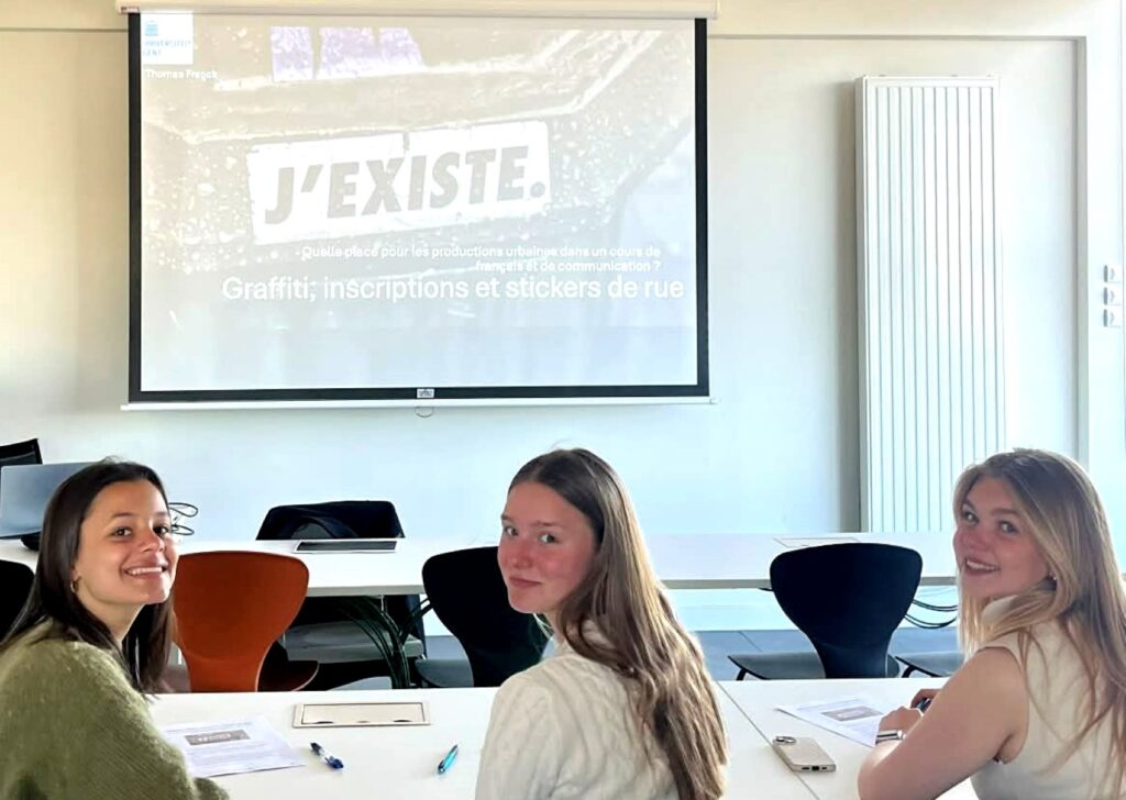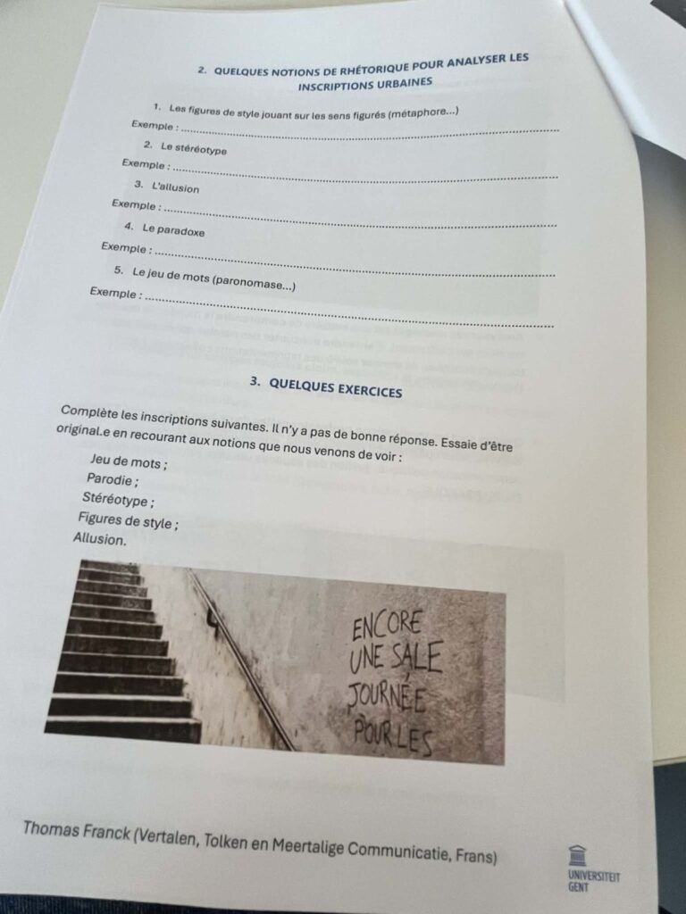 Ze kregen er workshops: Workshop 1, graffiti, inscriptions et stickers de rue, gegeven door prof. Thomas Franck (Franse taalkunde).