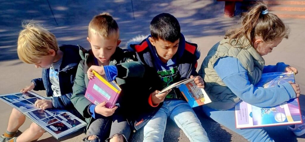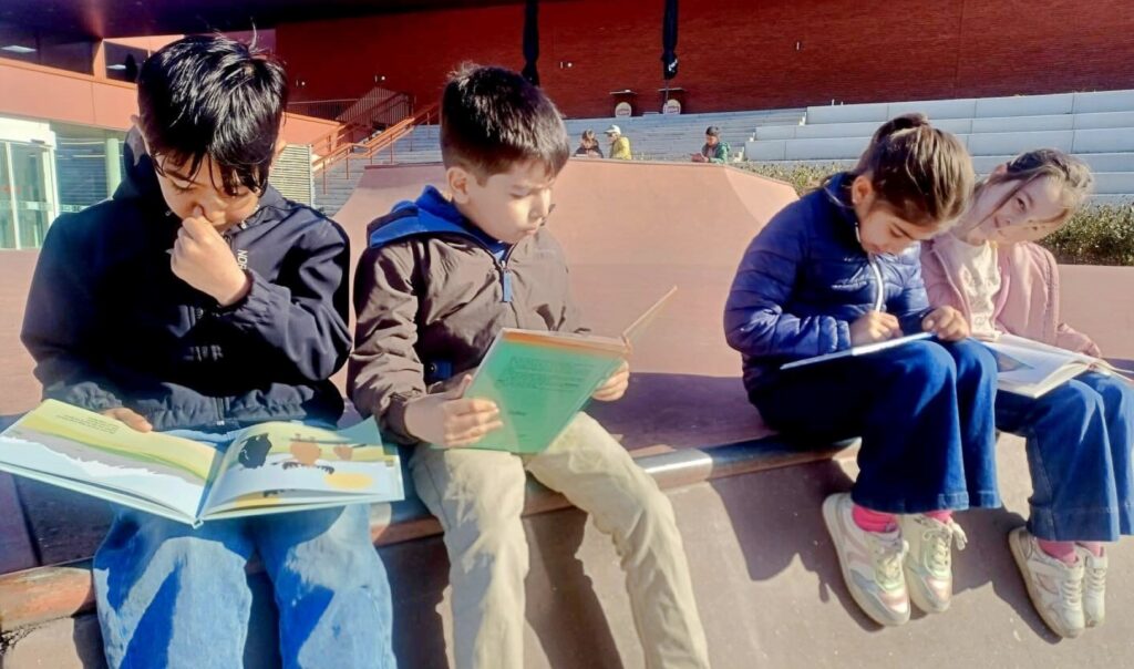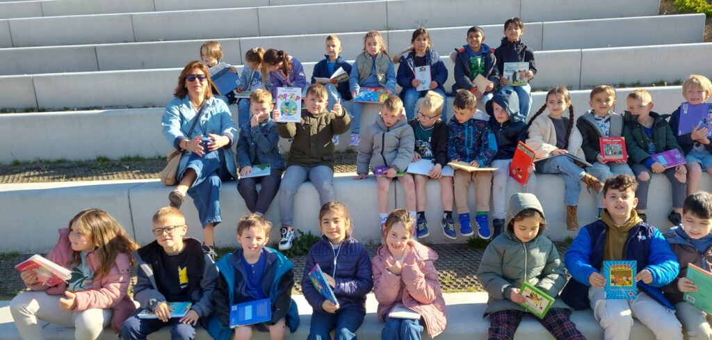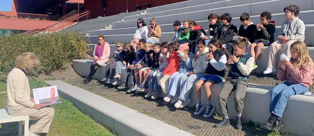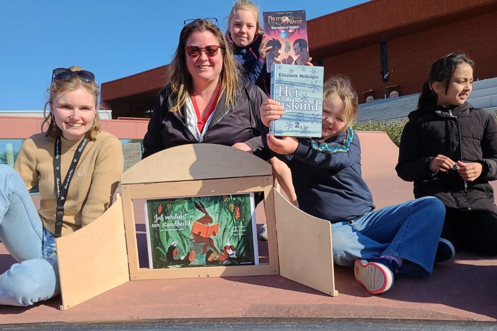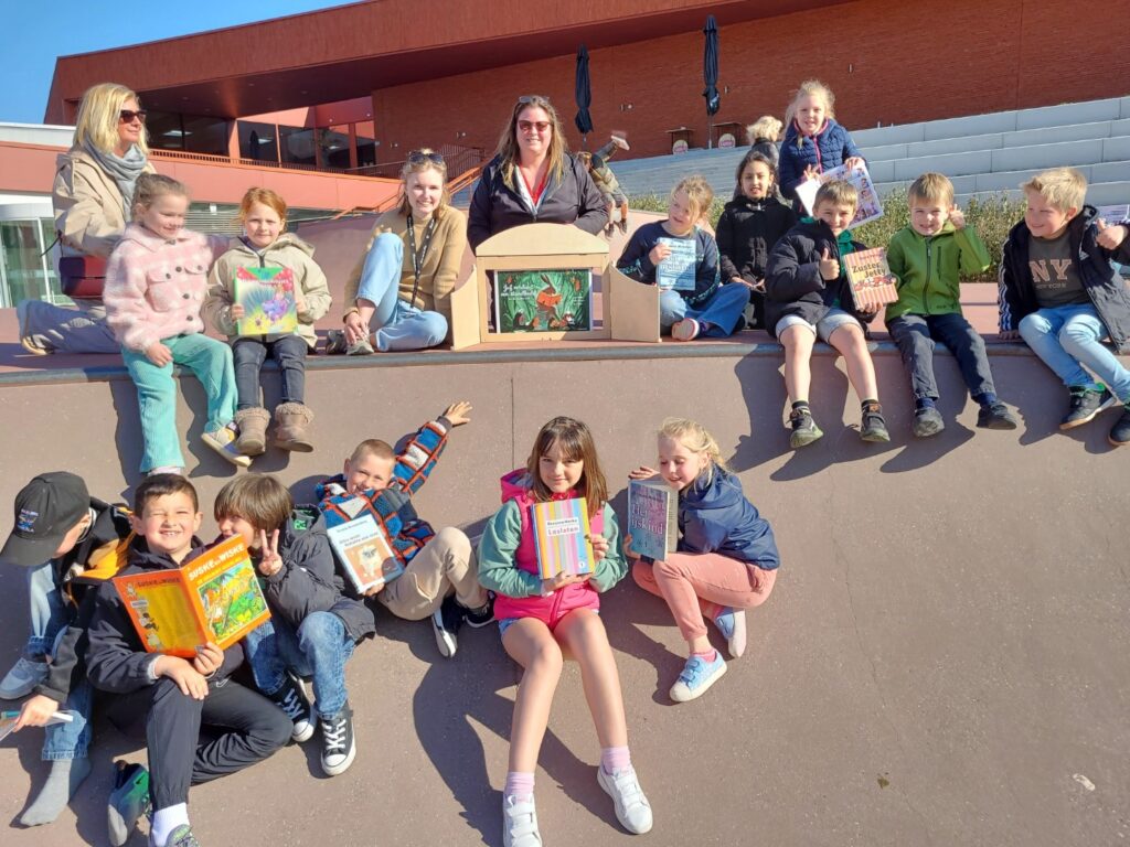 De leerlingen van het 1ste t.e.m. het 3de leerjaar van ONS/Groenestraat trokken naar het skatepark naast de school voor een bijzonder leesmoment. Daar zorgde Bibliotheek Blankenberge voor een gezellig voorleesmoment én heel wat leuk leesvoer.