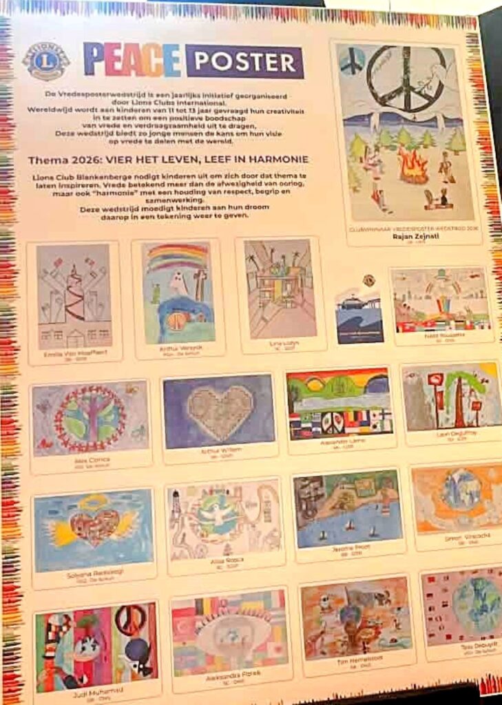 Het programma ‘Vredesposter’ is een initiatief van Lions Clubs Blankenberge en heeft het doel om kinderen tussen 11 en 13 jaar een tekening te laten maken met een jaarlijks gekozen thema over de vrede. Dit jaar: “Vier het leven, leef in harmonie”